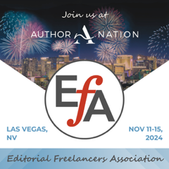 Hey, Author Nation! I’m excited to meet everyone and talk about editing, reading, writing, and books. On Thursday, I’ll be doing a talk and office hours with writer, editor, and EFA Co-Chair Cody Sisco, and you can find me at the Editorial Freelancers Association booth. Want to set up a time to talk? Drop me a line or book an appointment.