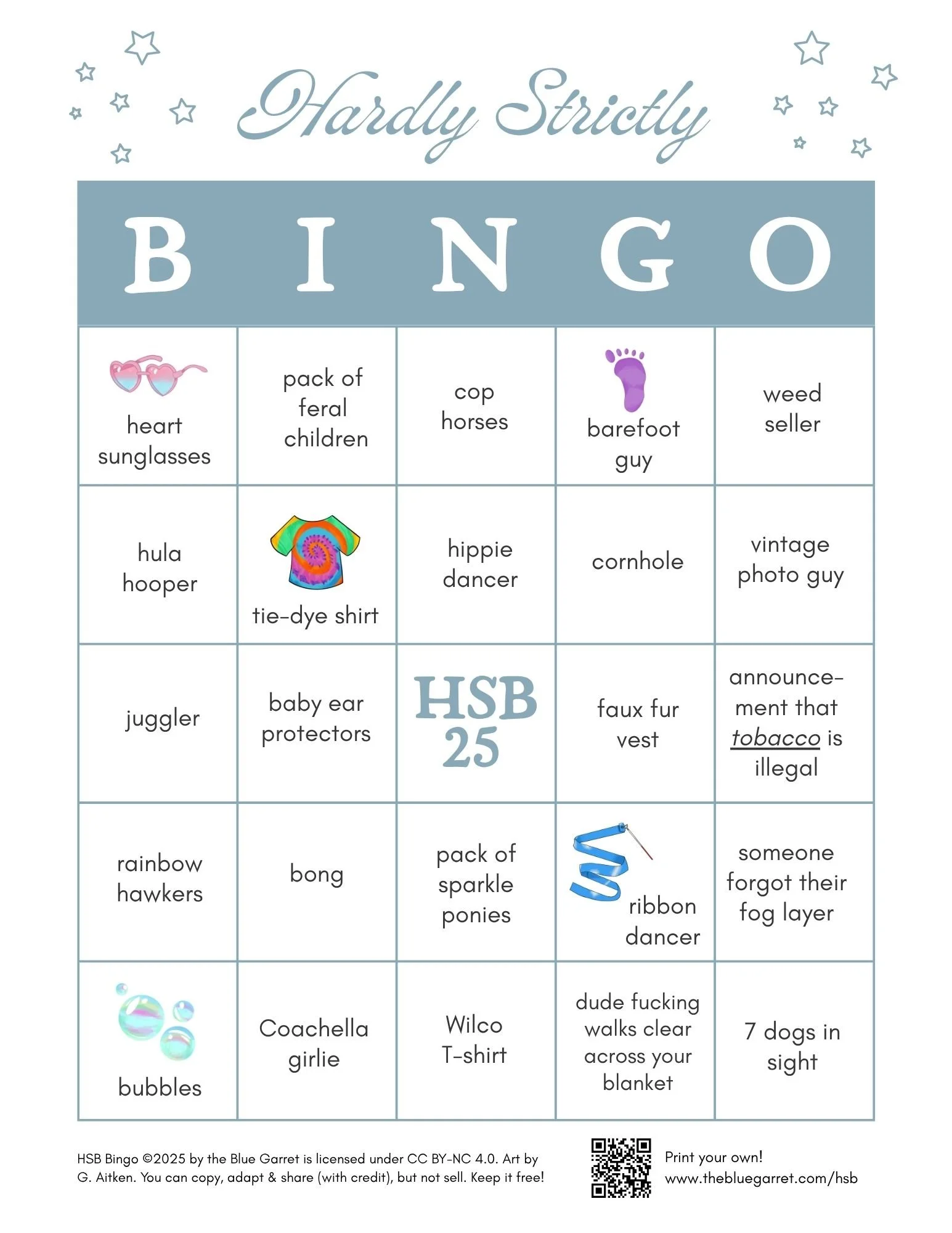 HSB Bingo © 2025 by The Blue Garret is licensed under CC BY-NC 4.0. Art by G. Aitken. You can print, copy, adapt & share (with credit), but not sell. Keep it free!